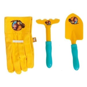 Sada dětského nářadí skládající se ze 3 kusů zahradního nářadí, která obsahuje hrabičky, lopatku a rýč.