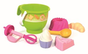 Sada na písek pro holky, která obsahuje kyblík, sítko, konev a ladší doplňky. 10 ks.Rozměr 25x27x15 cm.Vhodné od 2 let.