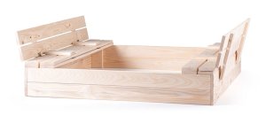 Pískoviště značky Woody z masivního dřeva. Vybavené praktickým sklopným víkem, které chrání písek před zvířaty, spadaným listím a jinými nečistotami.