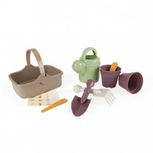 Sada náčiní pro malé zahradníky. balení obsahuje: konvičku, motyčku, zahradní kleště, květináč, lopatku, rozprašovač, rypadlo na zasévání, rostlinku