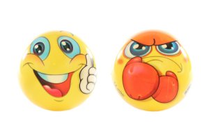 Míče s motivem emotikonů o průměru 23 cm.