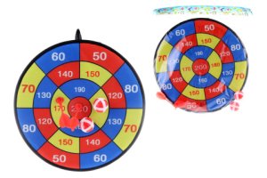 Terč na suchý zip o velikosti cca 35,5 cm se dvěma míčky a dvěma šipkami.