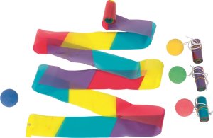 Barevná stuha s míčkem poskytuje krásný pohled na vlnící se barvy.