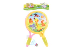 Balení obsahuje 2 plastové pálky s motivem zvířátek, plastový míček a plastový košíček.