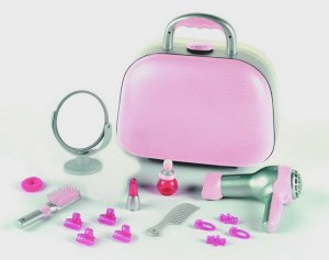 Kadeřnický kufřík Braun obsahuje plně funkční fén na vlasy, kartáč na vlasy, hřebínek, zrcátko, sponky do vlasů a řadu dalších doplňků.