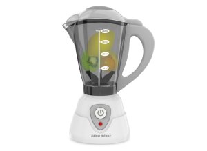 Mixér s ovocem. on/off přepínač baterie 2xAA nejsou součástí, rozměry: 11x14x23cm, světelné efekty. návod na použití na obale.