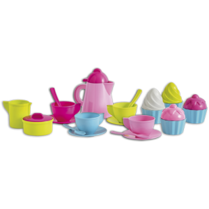 Jídelní set obsahuje vše potřebné pro nachystání pohoštění, vč. nádobí. 4 talíře, sada příborů, pohárky, hrníčky, konvička s víčkem, hrnec s víkem, ovoce a další.