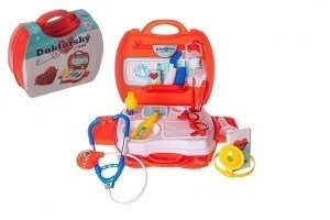 Doktorská sada obsahuje plastový stetoskop, injekci, nůžky, teploměr a další doplňky.