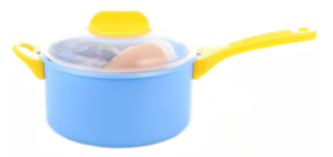 Sada plastového nádobí obsahuje konvici, hrnec, síto, rendlík, pánev, pokličku a další doplňky.