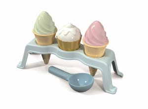 Krásná sada v pastelových barvách obsahující zmrzlinové kornouty a kopečky, které lze v přiloženém stojánku podávat v nekonečných kombinacích a krásně je aranžovat.
