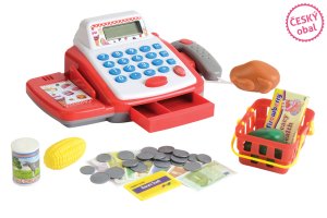 Pokladna s příslušenstvím. Napájení na 2x AA baterie.