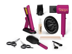 Tato sada pro malé kadeřnice obsahuje fén na baterie, žehličku na vlasy, nůžky hřeben, natáčky, kapsář a mnoho dalších doplňků.