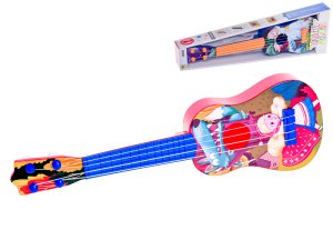 Dětská plastová kytara se čtyřmi strunami pro všechny malé hudebníky, muzikanty, či kytaristy.