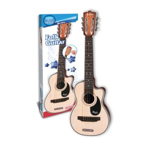 Folková kytara s 6 kovovými strunami, kovovu mechanikou, realistickým zvukem a trsátkem.