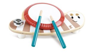 Rozměry balení: 9,5x7x2 cm Rozměry tamburíny: 6,7x9,2x1,8 cm Věk: 1,5+ Materiál: dřevo, kov