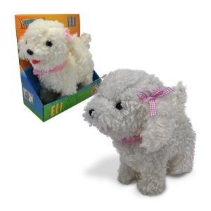 Interaktivní štěňátko s dotykovým sensorem, který má umístěný na hlavě.