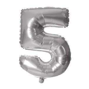 BALÓNEK ČÍSLICE 5, 30CM, MATNĚ STŘÍBRNÁ