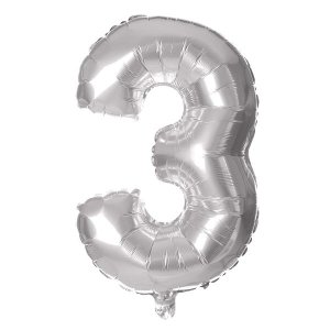 BALÓNEK ČÍSLICE 3, 30CM, MATNĚ STŘÍBRNÁ