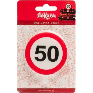 Svíčka na dort ve tvaru dopravní značky s 50.
