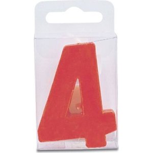 Svíčka ve tvaru číslice 4, červená, výška 4 centimetry.