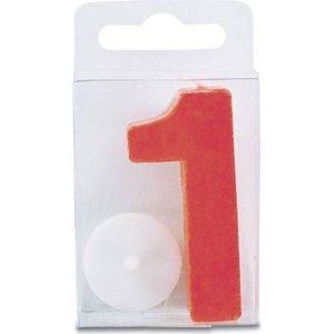 Svíčka ve tvaru číslice 1, červená, výška 4 centimetry.