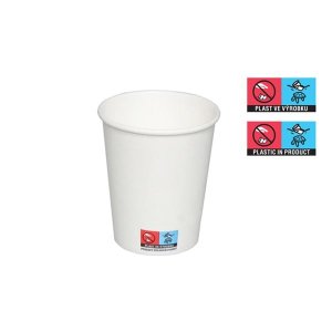 Nápojový kelímek papírový Vhodný pro studené i teplé nápoje Barva bílá EU logo Objem 200 ml Balení 1000 kusů