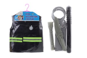 Policejní sada. Balení obsahuje vestu, pouta, obušek, baterku, nůž a vysílačku.