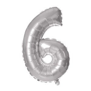 BALÓNEK ČÍSLICE 6, 30CM, MATNĚ STŘÍBRNÁ