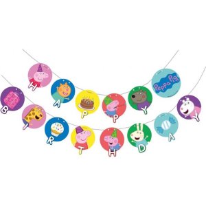 Narozeninová girlanda Happy Birthday s motivem prasátko Pepa.