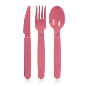 Praktická plastová sada příborů, vhodná na zahradní párty nebo třeba na kempování.