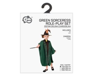 Kostým Kouzelník/Kouzelnice zelený ve velikosti 110/120 cm je určený pro děti, které si chtějí užít karneval nebo tematickou párty s magickou atmosférou.