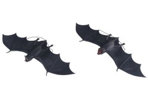 Gumový černý netopýr se po pověšení za připnuté poutko bude třepotat.