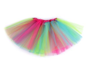 Roztomilá saténová sukýnka TUTU je zdobena barevným tylem s dekorem hvězdiček.