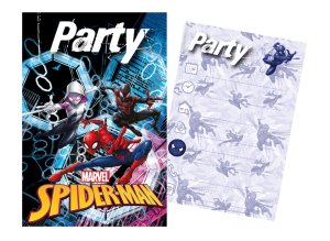 Sada párty pozvánek obsahující 5 krásných pozvánek a 5 obálek na zabalení pozvánek s motivem Spider-man, abys mohl/a pozvat všechny své kamarády a kamarádky na svou úžasnou párty 15x10 cm