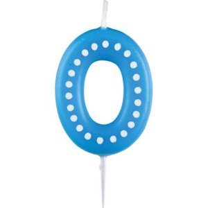 Narozeninová svíčka ve tvaru číslice 0 s puntíky.