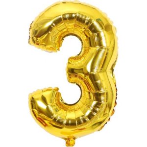 Fóliový balónek číslo 3, zlatý, 102 cm.