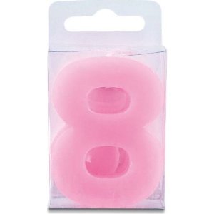 Svíčka ve tvaru číslice 8, růžová barva, výška 4 cm.