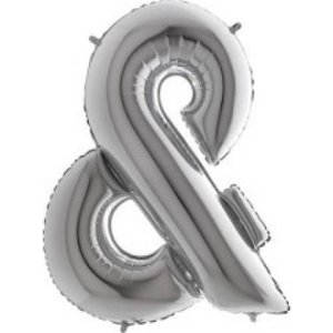 Stříbrný balónek písmeno Q. Balónek je vyrobený z pevné fólie.