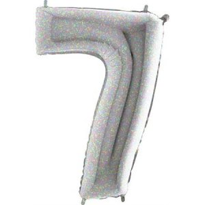 Holografický balónek číslo 7. Balónek je vyrobený z pevné fólie.