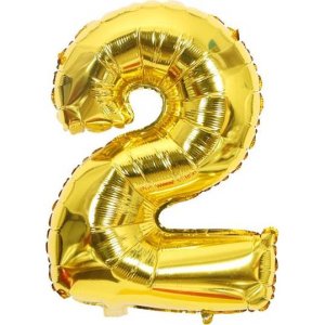 Fóliový balónek číslo 2, zlatý, 102 cm.