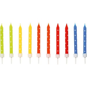 Svíčky barevné s puntíky jsou skvělou ozdobou dortů a cupcakes.