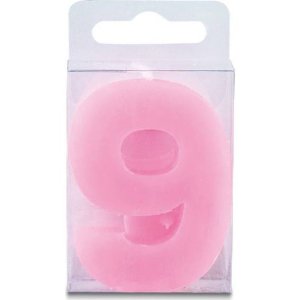 Svíčka ve tvaru číslice 9, růžová barva, výška 4 cm.