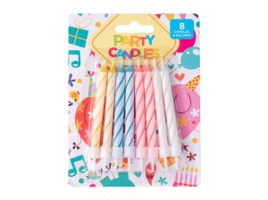 Emocio dortové svíčky 8 ks (78 mm) + 8 ks spirálových svícnů, mix barev.