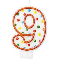 Svíčka číslice "9" je vhodná k zapichování na narozeninový dort.