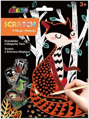 Úžasně pestrobarevná škrábací aktivita zabaví i ty nejmenší. Škrábejte speciální černý papír a vytvořte barevný svět zvířat.