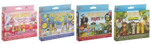 Kreativní sada na výrobu dřevěných panáčků – sada obsahuje 4 dřevěné panáčky 6,5 cm, 1 aršík samolepek, 6 vodových barev, 2 štětce a 1 pozadí.