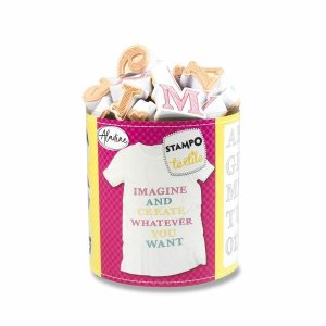 Razítka na textil. Sada obsahuje razítkovací polštářek s textilní barvou.