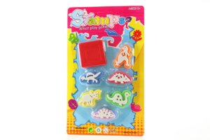 Set obsahuje celkem 9 razítek různé velikosti a modrou inkoustovou podušku v oblíbených dětských motivech.