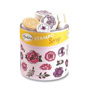 Set obsahuje 12 motivů. Razítka jsou upevněna na dřevěném bloku.
