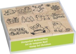Sada 11 ks dřevěných razítek s vánočními motivy.